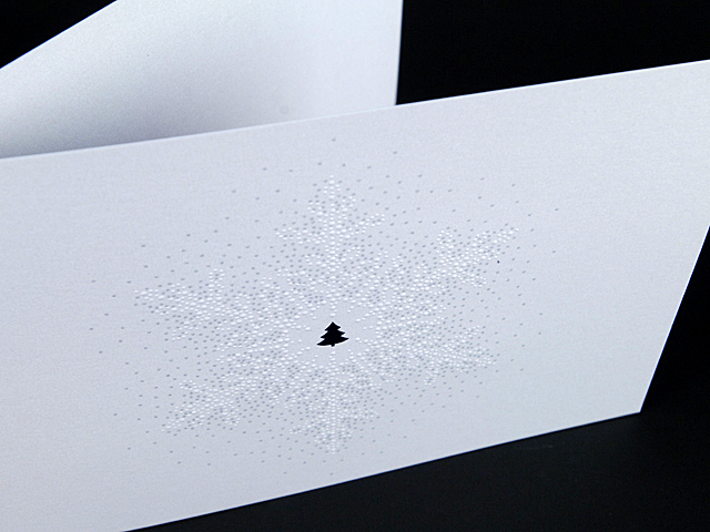 weihnachtskarte mit relieflack, blind- und folienprägung.