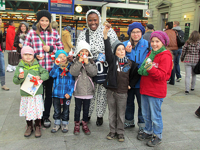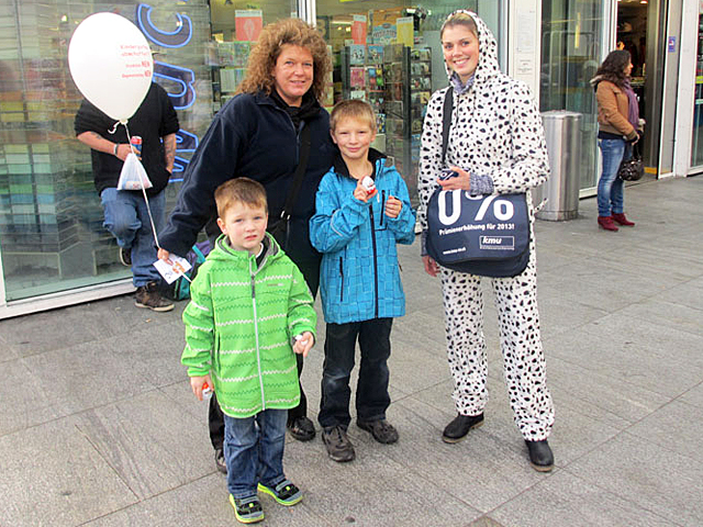 auftragdie 0%-prämienerhöhung der kmu-krankenversicherung soll durch eine auffällige promotion am hauptbahnhof winterthur unterstützt und beworben werden. hierzu werden überraschungseier an familien mit kindern abgegeben.